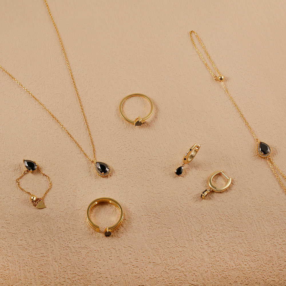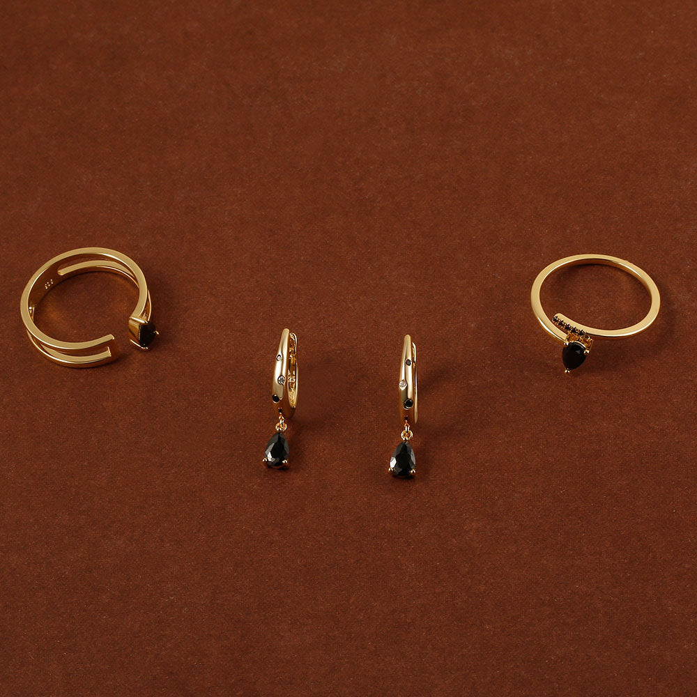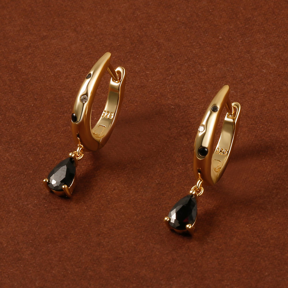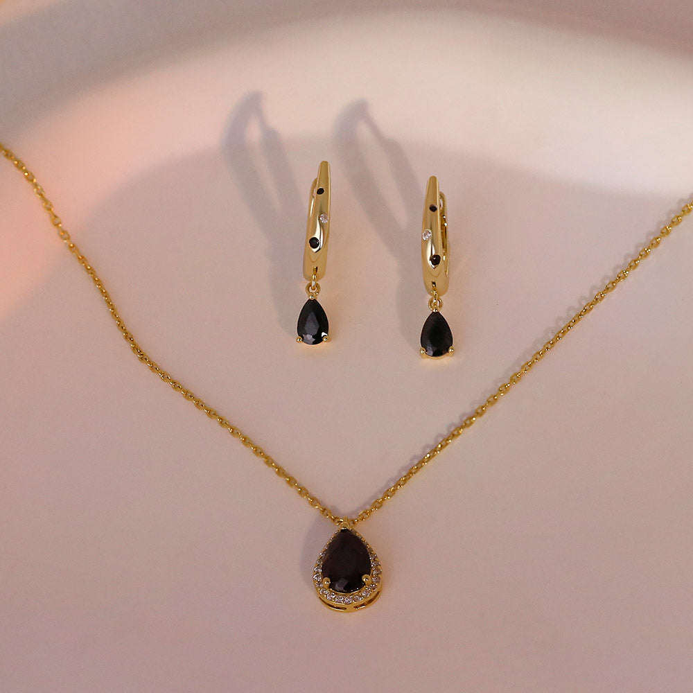 Gemstone Charm Huggie earrings Dark & Classy Jewelry Set