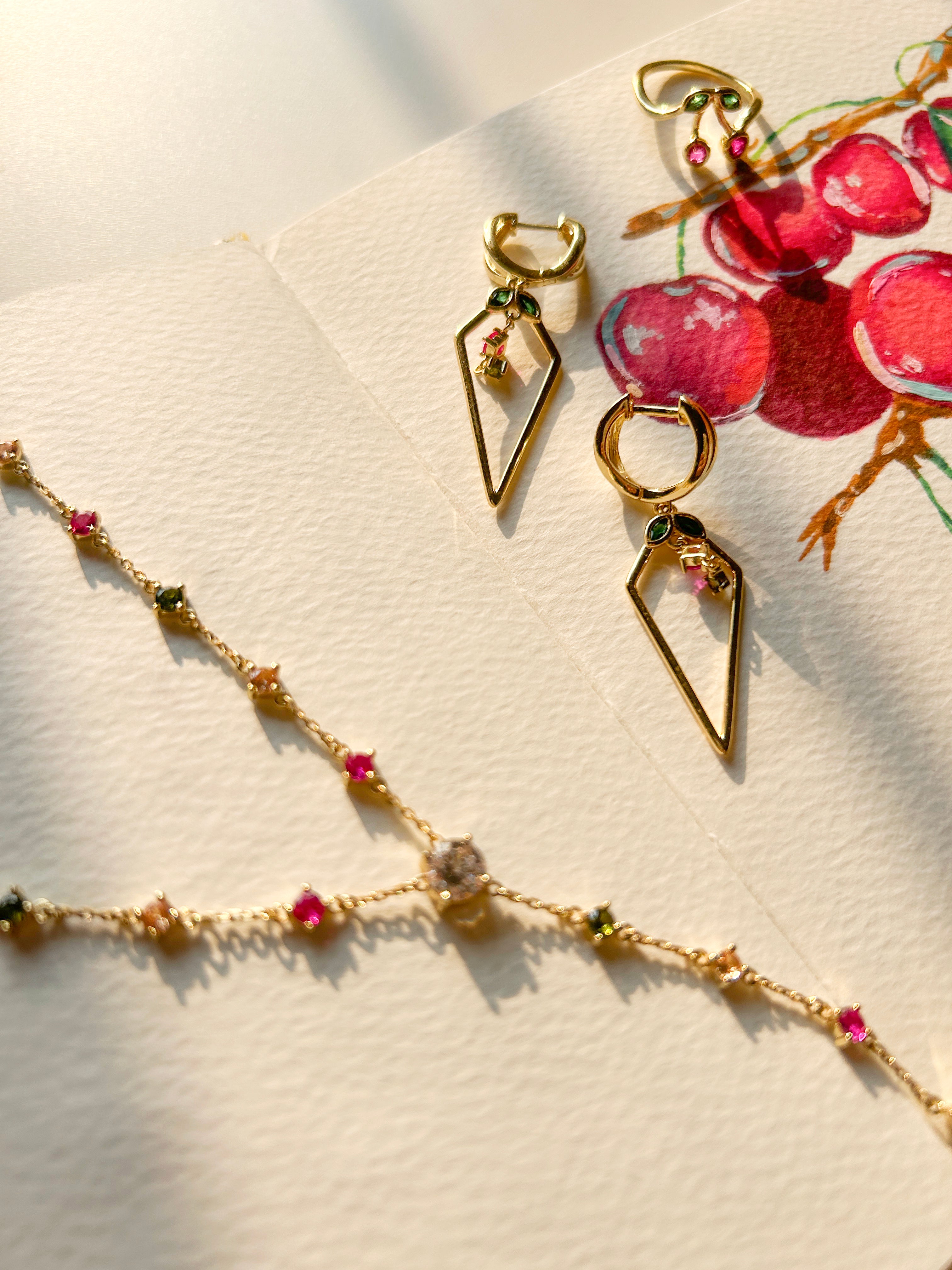 Cherry Colorful Gemstone Lariat Necklace Cherry Bombshell Jewelry Set Colletion
