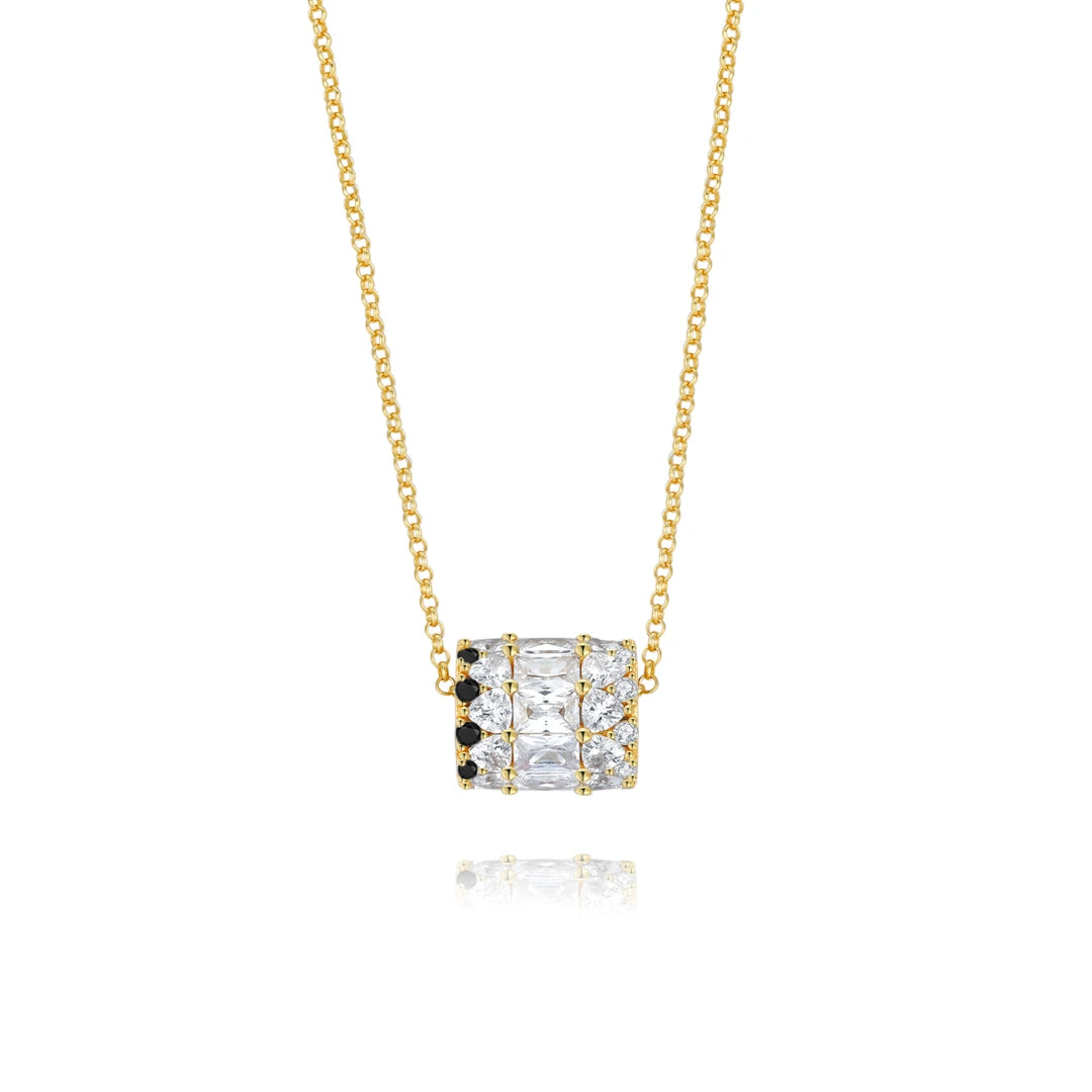 Et nyt moderne design af det klassiske evighedsvedhæng. Det er ikke let at glemme denne sorte brolagte krone halskæde. Som bæreren kan din arv heller ikke let glemmes.