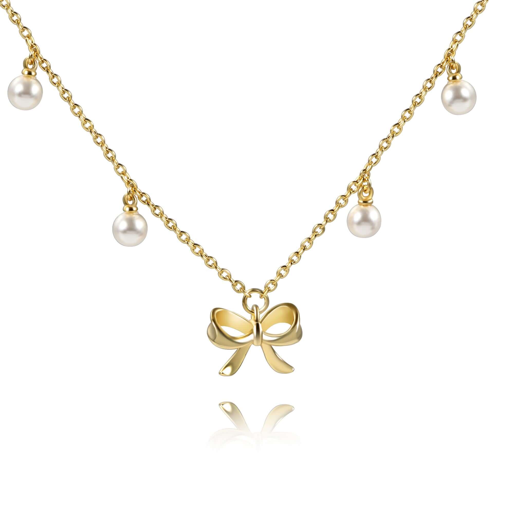 Elegance Pearl &Bow Charm Necklace